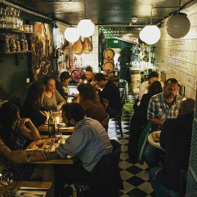 As we crossed the threshold of the repurposed shipping container, nestled in the Elephant and Castle version of Shoreditch’s effortlessly trendy Boxpark, Artworks, it doesn’t seem OTT to describe a sense of being transported, so complete was the design and execution of the inside of the structure to replicate a cutsy French cantina. White tiles, trailing green ferns, cages holding wine, all surrounded rustic, wooden tables imaginatively arranged into a squeamishly tight reclaimed space that couldn’t be more than a few square feet.