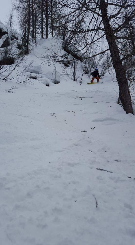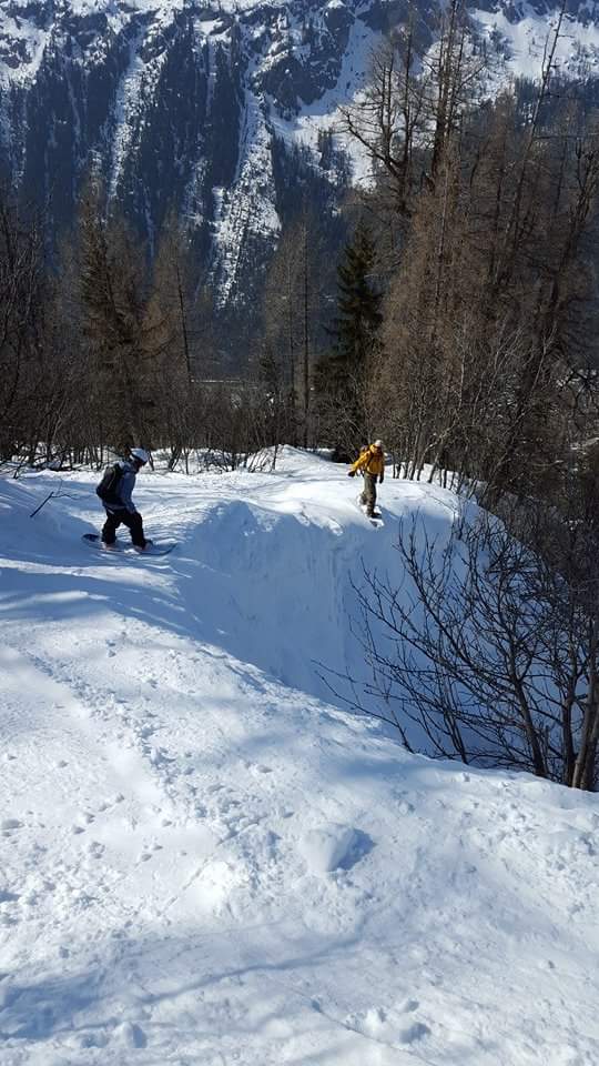 It’s day four of our off-piste snowboarding tour in Chamonix and I feel somewhat hardened to the relentless nerve-shattering that is following our fearless guide down all the bits of the mountain that don’t seem fit to ski. Add to the incline of the “runs” the lacklustre snow covering of an unusually mild winter, and I feel we’ve inadvertently signed up for an entirely different sport – not off-piste boarding but off-snow all together. Boarding between, under – and sometimes straight through – trees, over crevasse-potted glaciers and hiking in zero-tread snowboard boots across 3000m altitude ridges, the experience for me undulates between adrenalin-fuelled elation and genuine terror of death.