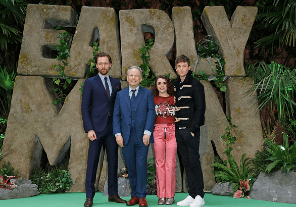 The star-studded cast who voice the characters were there at the film’s premiere at the BFI Imax in London, including Eddie Redmayne, who voices Dug, Tom Hiddleston whose voice is unrecognisable in the French-accented Nooth, Maisie Williams, who plays the tribe’s saviour as a young girl whose football talent helps them win their match, and Nick Park himself who takes the role of the grunting wild boar Dug has as a pet, Hognob.