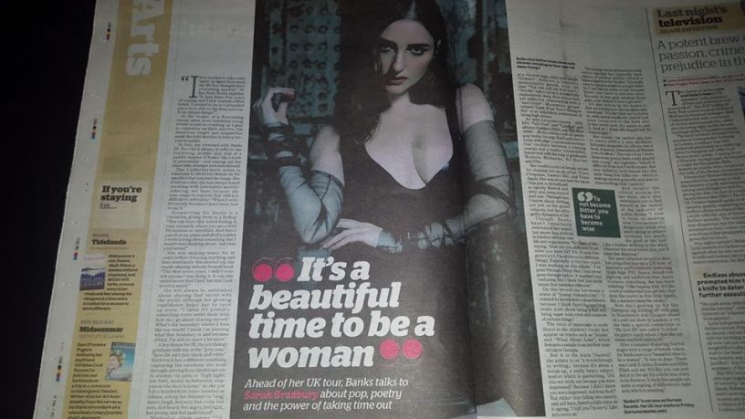 Songwriting for Banks is a catharsis, giving form to a feeling: “You can have this weird feeling in your stomach, where you are a little bit anxious or unsettled. And then I can sit at my piano and all of a sudden I wrote a song about something that I wasn’t even thinking about – but I feel a lot better.”