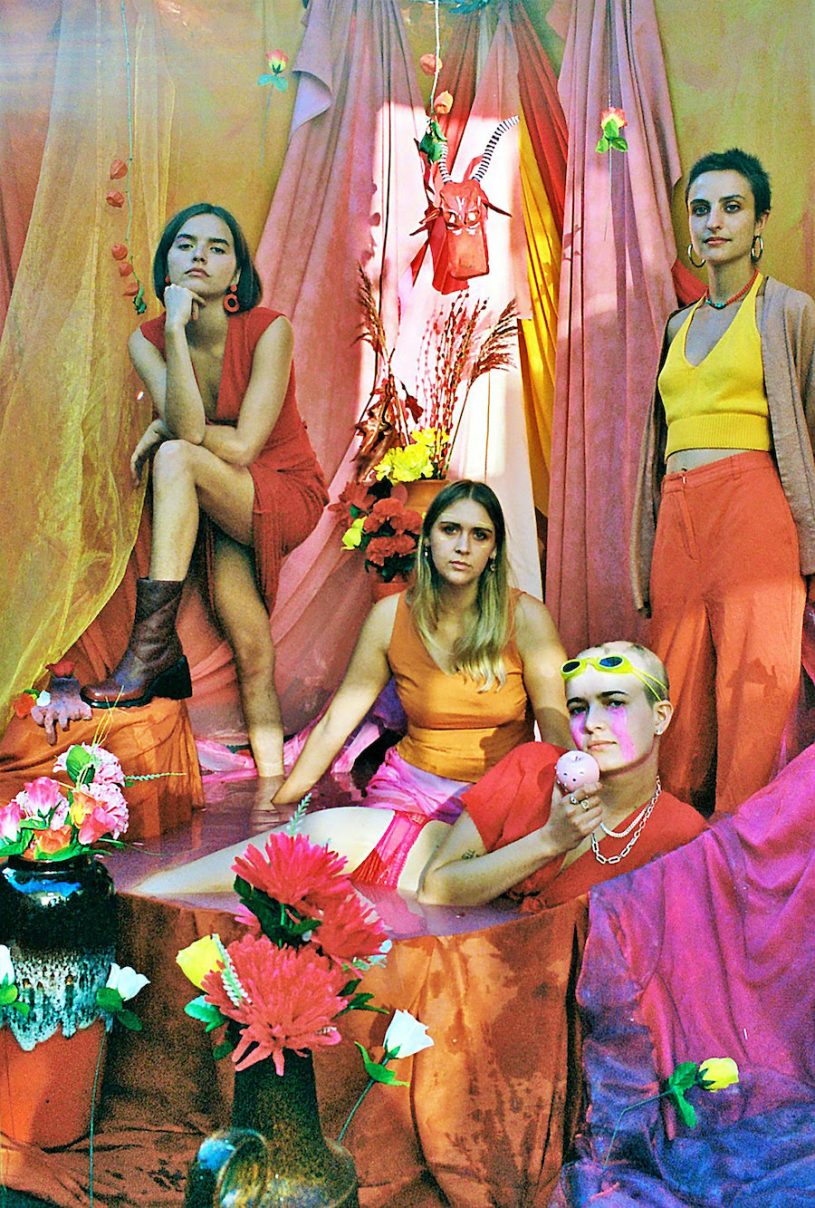From across London via Zoom, three-quarters of the South London post-punk band – Clottie Cream, Rosy Bones and Holy Hole, aka Lottie Pendlebury, Rosy Jones and Holly Mullineaux – are telling me what the seemingly euphemistically-titled ‘On All Fours’ is all about.